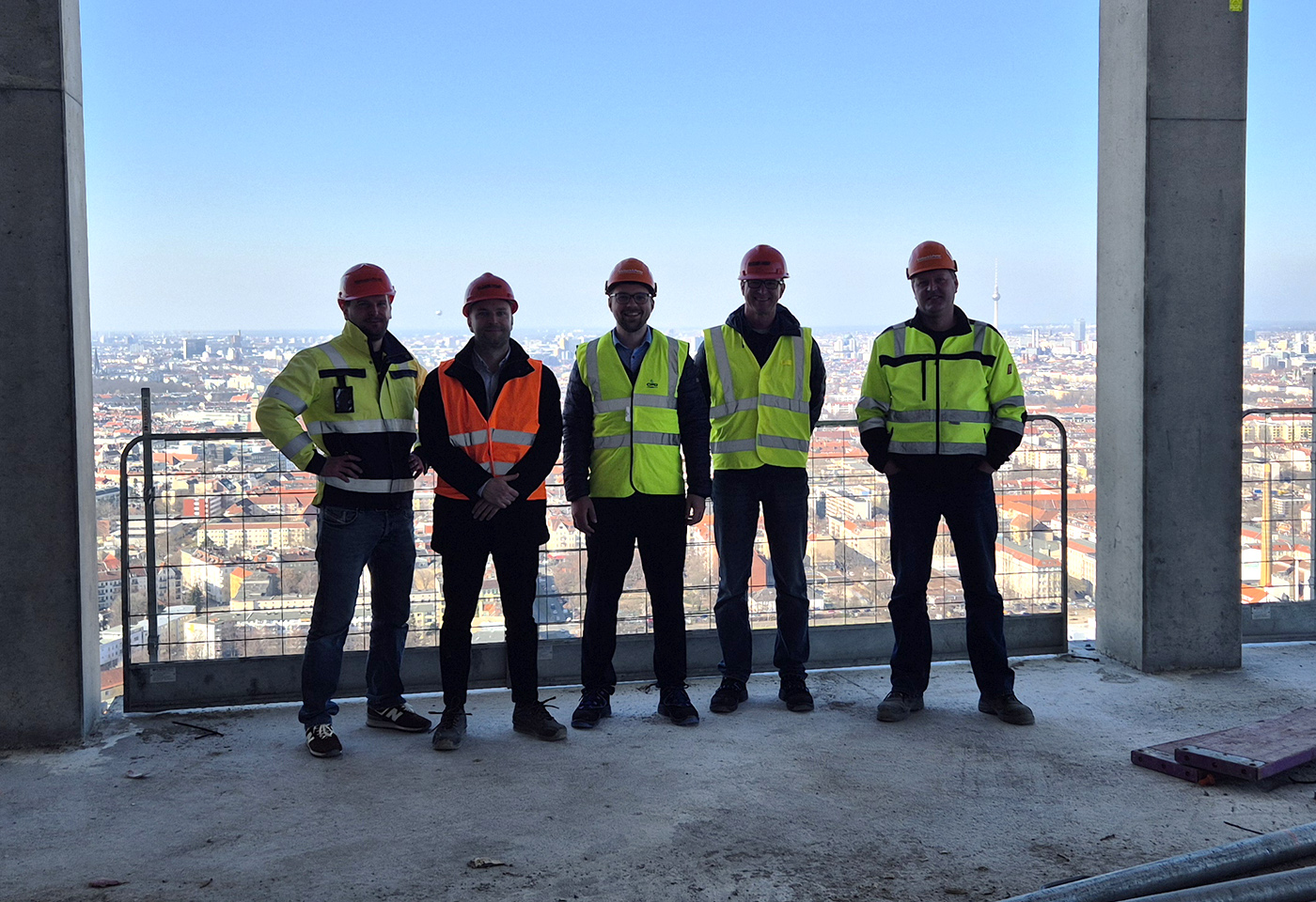 Kundenbesuch in Berlin auf der Baustelle des Estrel-Towers